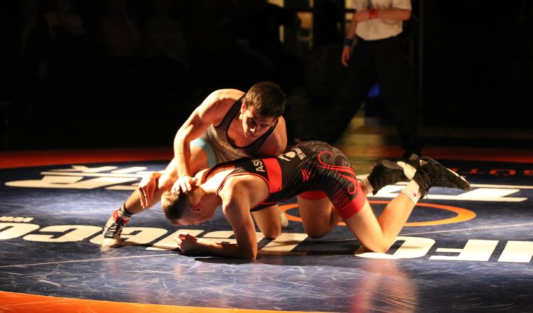 75 kg Freistil: Josef Giehl hat sich zum Siegringer in der Oberliga entwickelt. Gegen Kevin Zeh gewinnt er bereits in der ersten Runde mit 16:0 durch technische Überlegenheit (Endstand 12:25).
