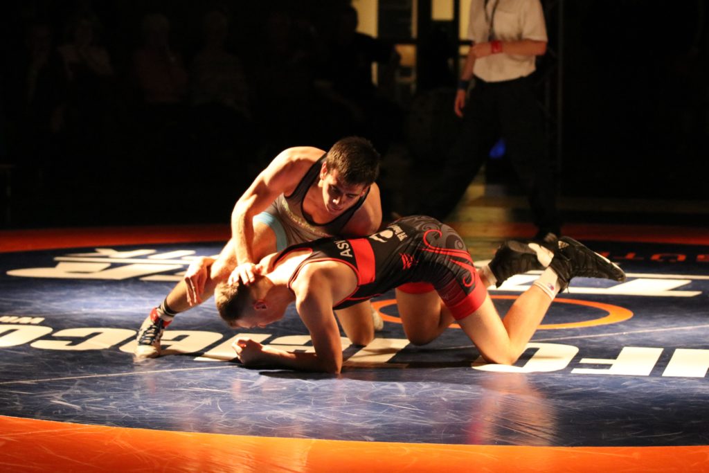 75 kg Freistil: Josef Giehl hat sich zum Siegringer in der Oberliga entwickelt. Gegen Kevin Zeh gewinnt er bereits in der ersten Runde mit 16:0 durch technische Überlegenheit (Endstand 12:25).