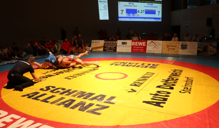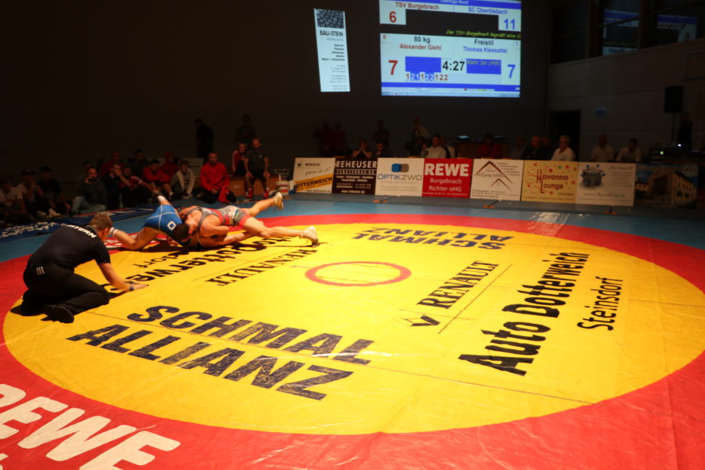 Es war der erwartete Spitzenkampf zwischen dem TSV Burgebrach und dem Pokalsieger 2019 aus  Oberölsbach. Die Hausherren lagen zwischenzeitlich mit 2:11 zurück, als Felix Pflauger, Alexander Giehl und Yunier Castillo nicht nur verkürzten, sondern den TSV mit vorzeitigen Siegen sogar auf die Gewinnerstraße schickten. Schlussringer Dominik Winkler machte dann gegen den starken Ungarn alles klar. Beide Teams konnten jeweils fünf  Siege für sich verbuchen. Dem TSV gelangen allerdings mehr vorzeitige Siege. Das war am Ende der Grund für den 15:11 Sieg der Ringer aus dem Steigerwald. Die gigantische Aufholjagd des TSV war enorm. Zuschauer und Ringer lagen sich in den Armen. Ein Erlebnis der Emotionen.