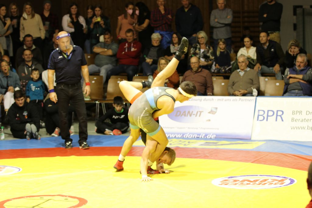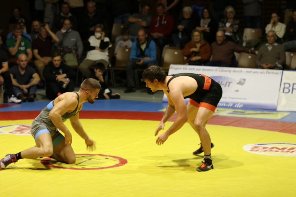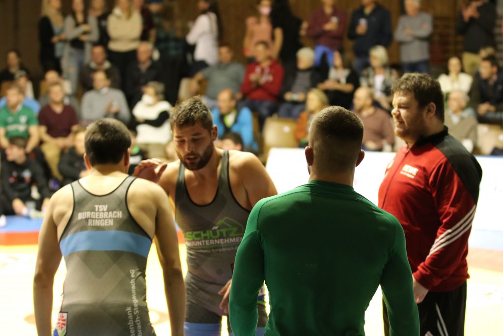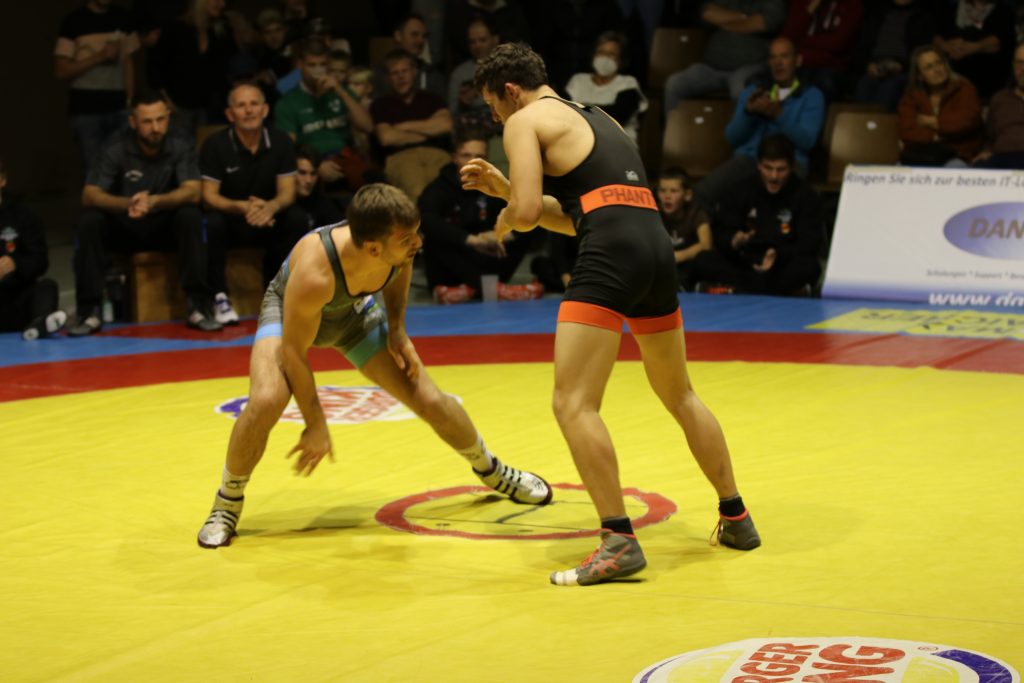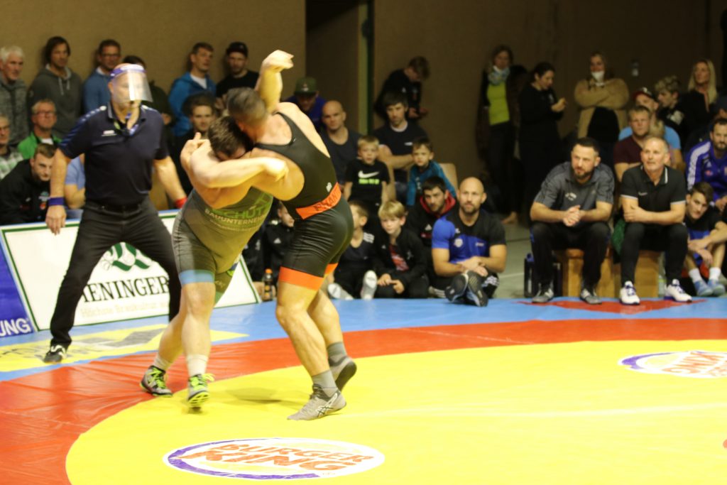 Eines von vielen Schlüsselduellen fand beim Stand von 11:8 nach der Pause statt, als Benedikt Argstatter auf Milan Mester, den Dritten der U23 Weltmeisterschaft von 2019, traf. Taktisch klug ringend ließ der Angerer seinen ungarischen Kontrahenten nie zur Entfaltung kommen und ging nach jeweils einer verstrichenen Aktivitätszeit mit einem ausgeglichenen 1:1 Pausenstand in den zweiten Durchgang. Dort wurde Argstatter vom sicher leitendeten Kampfrichter Konrad Rankl mit einer zweiten Aktivitätszeit belegt, nach deren Verstreichen Mester mit 1:2 in Führung ging. Bis zum Abpfiff änderte sich nichts mehr an diesem Ergebnis, womit der Kampf zwar an den Gästeringer ging, dieser aber nur einen Mannschaftspunkt erreicht hatte. Ebenfalls mehr Punkte hatten die Gäste wohl in der Klasse bis 71 kg Freistil erwartet, wo sich Matthias Eckart und Yunier Castillo-Silveira gegenüberstanden. Zwar gelangen dem Burgebracher im Kampfverlauf insgesamt drei erfolgreiche Beinangriffe, durch die er sich einen 0:6 Vorsprung erarbeitete, mehr ließ der gut verteidigende Angerer aber nicht zu, wodurch am Ende nur zwei Mannschaftspunkte an die Gäste gingen. Beim zwischenzeitlichen Stand von 11:11 war es nun wieder an Zeit für Angerer Punkte, als in der Gewichtsklasse bis 80 kg griechisch-römisch Simon Öllinger gegen Dominik Winkler antrat. Nachdem er im Standkampf der aktivere Ringer gewesen war, nutzte der Angerer die angeordnete Bodenlage für einen Ausheber sowie anschließenden Suplex-Wurf, womit er nach drei Minuten mit 6:0 in Führung lag. Nach der Pause konnte der Burgebracher durch eine angeordnete Bodenlage zwar noch auf 6:1 verkürzen, da ihm daraus aber keine weiteren Aktionen gelangen, verließ der Angerer mit zwei Mannschaftspunkten im Gepäck die Matte nach sechs Minuten als verdienter Sieger.
