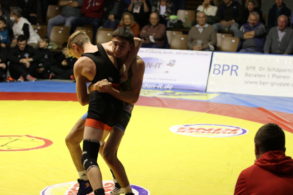 57 kg Gr.-röm.: Stark, wie sich der aus der eigenen Jugend, stammende Muchmad Chakimov im Oberligateam der Männer präsentiert. Er ließ Stefan Nitzinger keine Chance und wird Mitte der ersten Hälfte mit 16:0 zum Überlegenheitssieger erklärt (0:4).